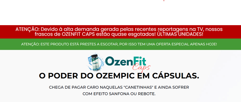 Descubra como Ozenfit Caps pode ajudar na sua jornada de emagrecimento. Comece hoje mesmo sua mudança! Acelera o metabolismo e Promove a saciedade.